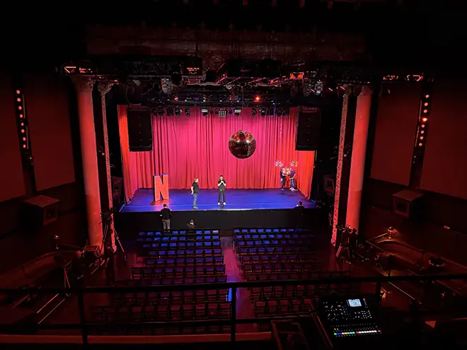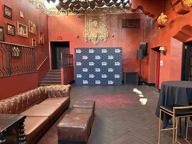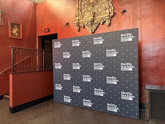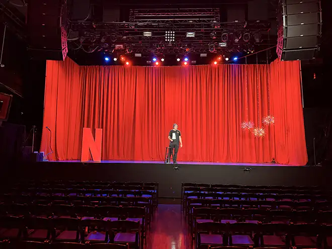 With time running out and no vendor in place for a key part of the production, we were brought in to handle the backdrop, lighting, and front of stage setup-all on short notice. It was a quick turnaround, but our team thrives in high-pressure situations. We pulled together a clean, professional look that brought the space to life and set the tone for an unforgettable night of comedy.