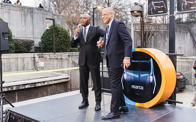 This Annual State of Marta event took place at the Metropolitan Atlanta Rapid Transit Authority Lindbergh Station train platform, with Marta's CEO and Council unveiling the first CQ400 futuristic redesigned trains.