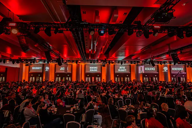 San Francisco, CA - In early October, 4Wall Entertainment and Metro Media Productions teamed up to bring California Nurses Association's vision to life at the 2025 Global Nurses Solidarity Assembly with a large-scale lighting, video, decking, and technical services package.