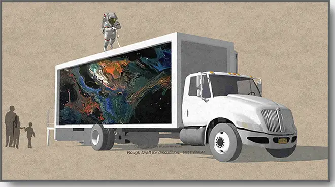 ISS or Space Shuttle Display inside a box truck/ container that can be taken from venue-to-venue for: