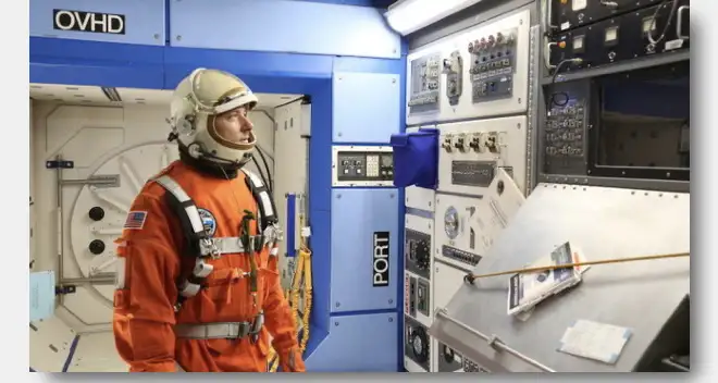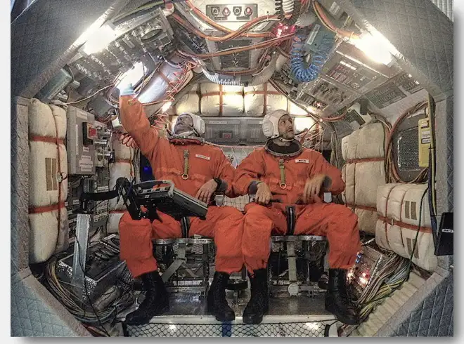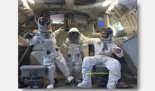 WonderWorks generic cockpit with our orange ACES spacesuits.