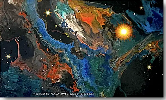 Recent images from the space telescopes are epic. WonderWorks has been working closely with Space Camp, Huntsville, Alabama, for decades. Recently, they started working with an artist from Alabama, Jacqueline Eve Miniard, who was spiritually and artistically Inspired by NASA's JWST (James Web Telescope) of the Universe & Earth. She currently has more than 40 paintings ready to be rented or sold directly. They are featured on WonderWorks's site but not part of WonderWorks's inventory. She can be contacted at jeveg2008@gmail.com