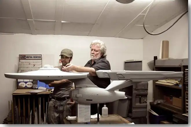 They also built the very first Enterprise for the "new TV series" that became the first movie and that was then used in the next two sequels and 5-6 accurate replicas for use in subsequent projects such as Planet Hollywood. They also made dozens of props for the movies and Brick went on to win an Emmy for his work on Star Trek Voyager in the episode "Caretaker" in 1995.