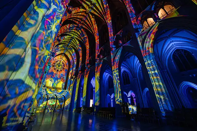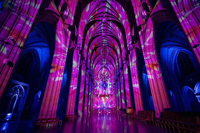 Rudolph selected a wide range of Chauvet Professional fixtures to fully envelop the Cathedral in experimental and dramatic hues, while accompanying the Nave projection mapping and music of Luxmuralis composer David Harper.
