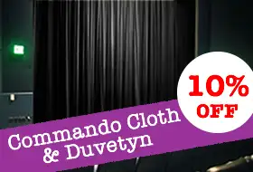 Inexpensive drapery for full stage blackout and masking. Choose from black as well as many other colors in a wide variety of widths and weights.