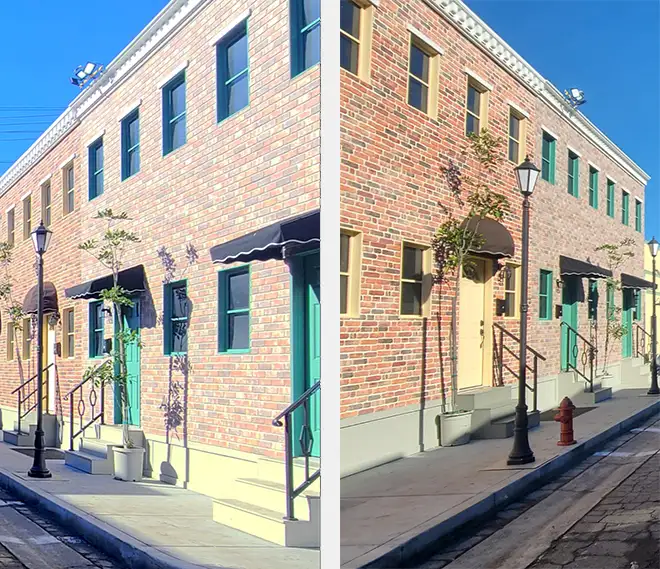 The Apartment Facades Standing Set is well suited for a wide range of productions, including verticals content and social-first narratives, feature films, independent features, commercials, music videos, sketch comedy, and re-creation documentary work. The scale, sight-lines, and controllable environment make the facades especially effective for tight framing, handheld coverage, long lenses, and fast-turnaround shoots, while still holding up for cinematic blocking and wide establishing shots.